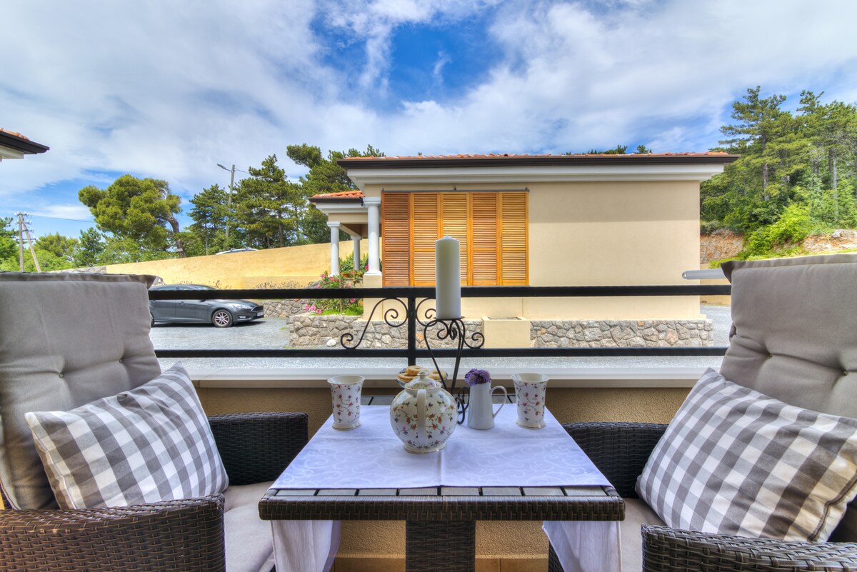 Luminoso y cómodo apartamento moderno, a solo 10 metros del restaurante, a pocos pasos de la playa y con vistas increíbles al mar y a la ciudad, con cocina totalmente equipada, wifi, TV. Se encuentra en un lugar pequeño y tranquilo a solo 3-4 minutos en coche del centro de la ciudad de Senj. El apartamento está situado en la casa, en el primer piso y tiene dos balcones.