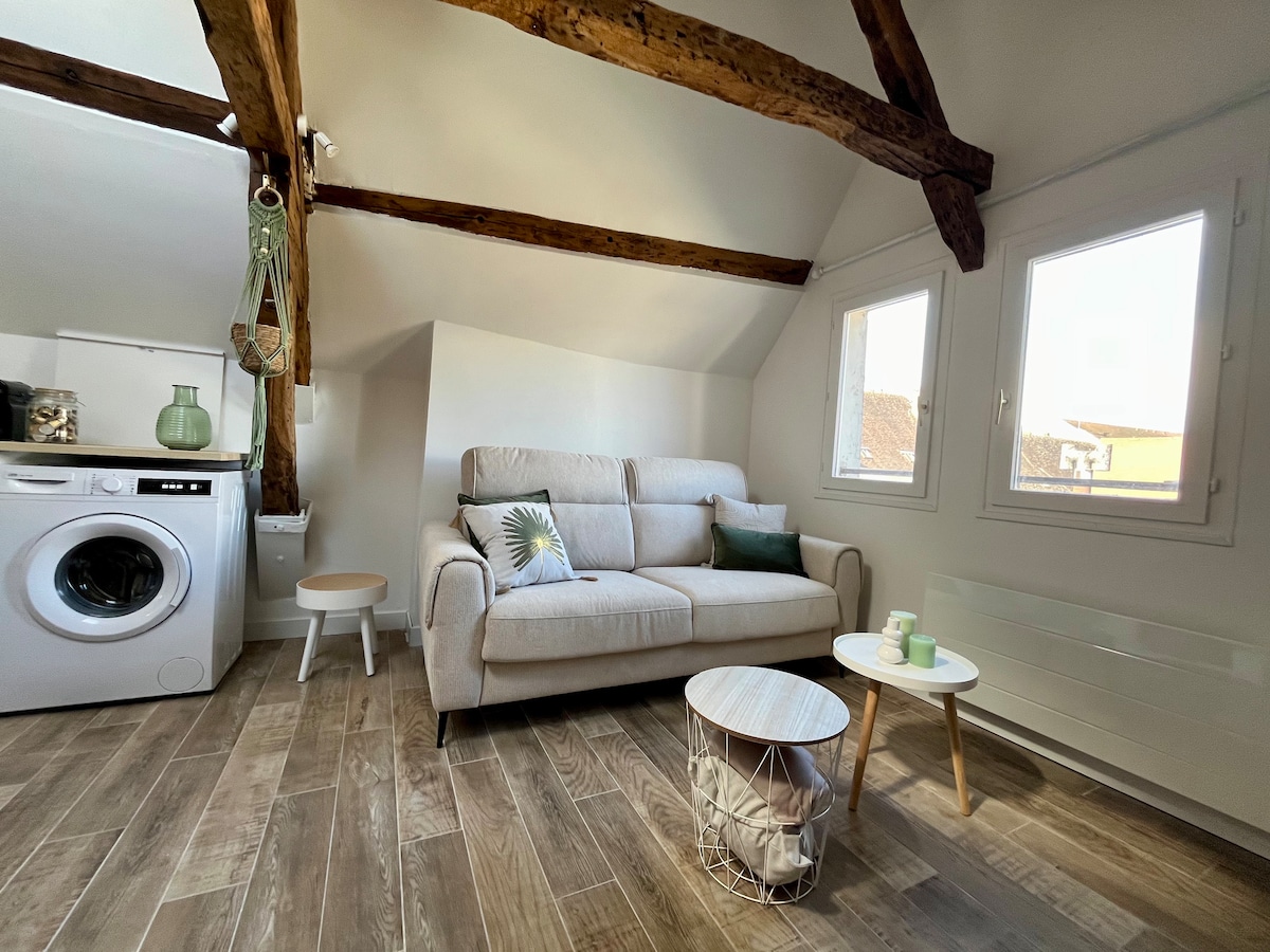 Apartamento renovado situado en pleno centro histórico de Sens, a dos pasos de la catedral, del mercado y de los comercios. Tranquilo y luminoso, ofrece un espacio acogedor con dormitorio separado por cristalera, sala de estar cómoda, zona de escritorio y cocina equipada. Baño moderno, lavadora secadora (parte común), ropa de cama incluida. Llegada autónoma, Wi-Fi. Estacionamiento fácil en las cercanías. Ideal para una estadía de negocios o un fin de semana en pareja.