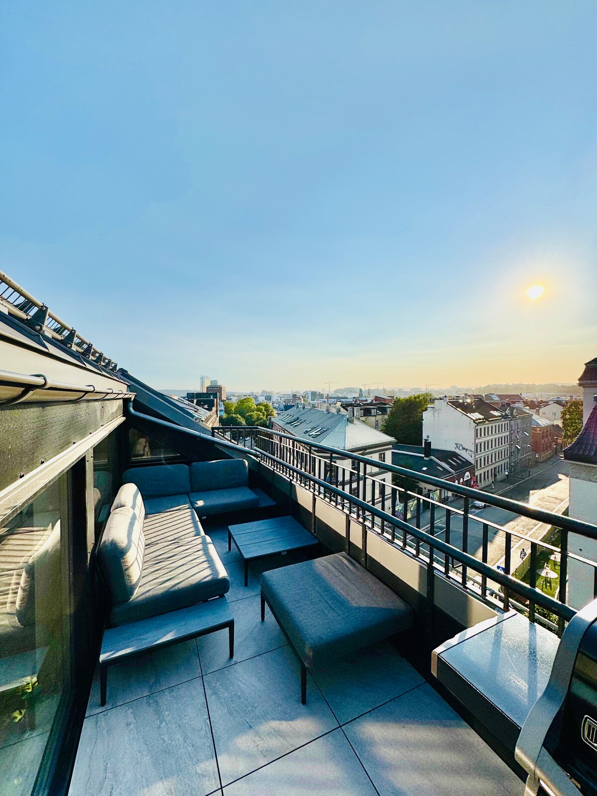 A cosy loft apartment, 40 m2, in one of the best parts of the citycenter, right in the hearth of Oslo - with the very best seawiew and sunsets right from your sofa. Short walking distanse to the Oslo sentral station, Royal Castle, Opera and harbour- area. Here you find the very best restaurants, shopping area, clubs&bars. The flat is in the seventh floor , with french balcony. Wonderful sunsets. Roof terrasse with 360 degrees view . Elevator in the building. Coffeshop in the first floor..