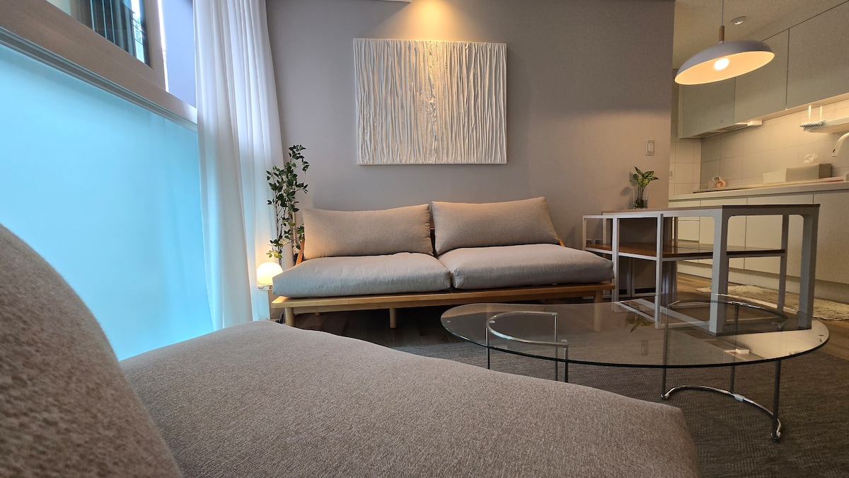 En el corazón de Seúl, donde la ciudad brilla más por la noche, te damos la bienvenida a Dongdaemun. A diferencia de las bulliciosas calles del exterior, nuestro lugar ofrece una estancia tranquila y acogedora con tonos cálidos de madera e iluminación suave, el lugar perfecto para relajarse después de un largo día. - 10-15 minutos a pie de DDP y Doota Mall - 5-10 minutos a pie de la salida 6 (o salida 4 para el ascensor) de la estación del Parque Histórico y Cultural de Dongdaemun (líneas 2, 4, 5) - Desde el aeropuerto: toma el autobús 6001 hasta la parada del hotel Baiton (2–5 minutos a pie).