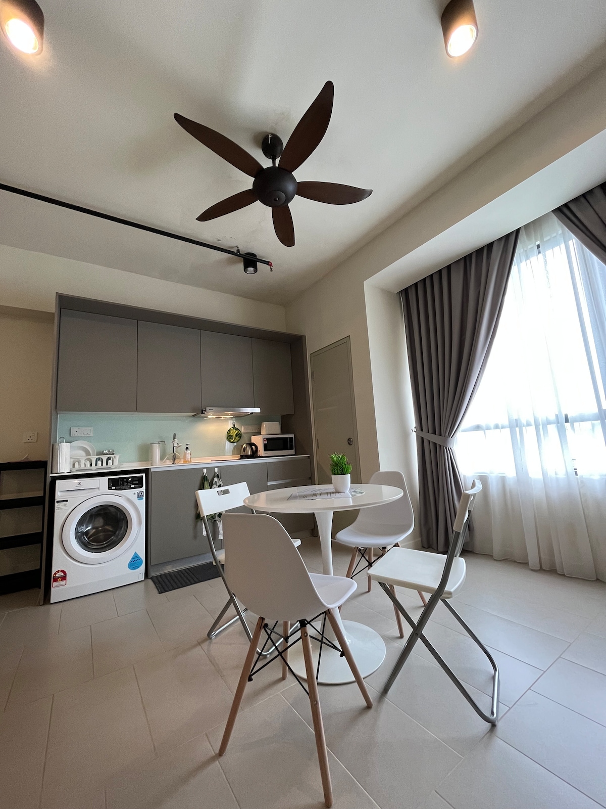 Acogedor, cómodo y espacioso apartamento de 1 dormitorio en un barrio tranquilo de Putrajaya, a poca distancia a pie del exuberante parque Saujana Hijau. Una cocina completa, lavadora, secadora, Internet de alta velocidad, TV de banda ancha (Astro), purificador de agua y una cerradura de puerta inteligente están a tu disposición para garantizar una estancia agradable. A 5 minutos en coche de Putrajaya Sentral, desde donde tardarás menos de una hora en llegar al corazón de Kuala Lumpur a través del MRT o 20 minutos a KLIA a través del KLIA Transit.