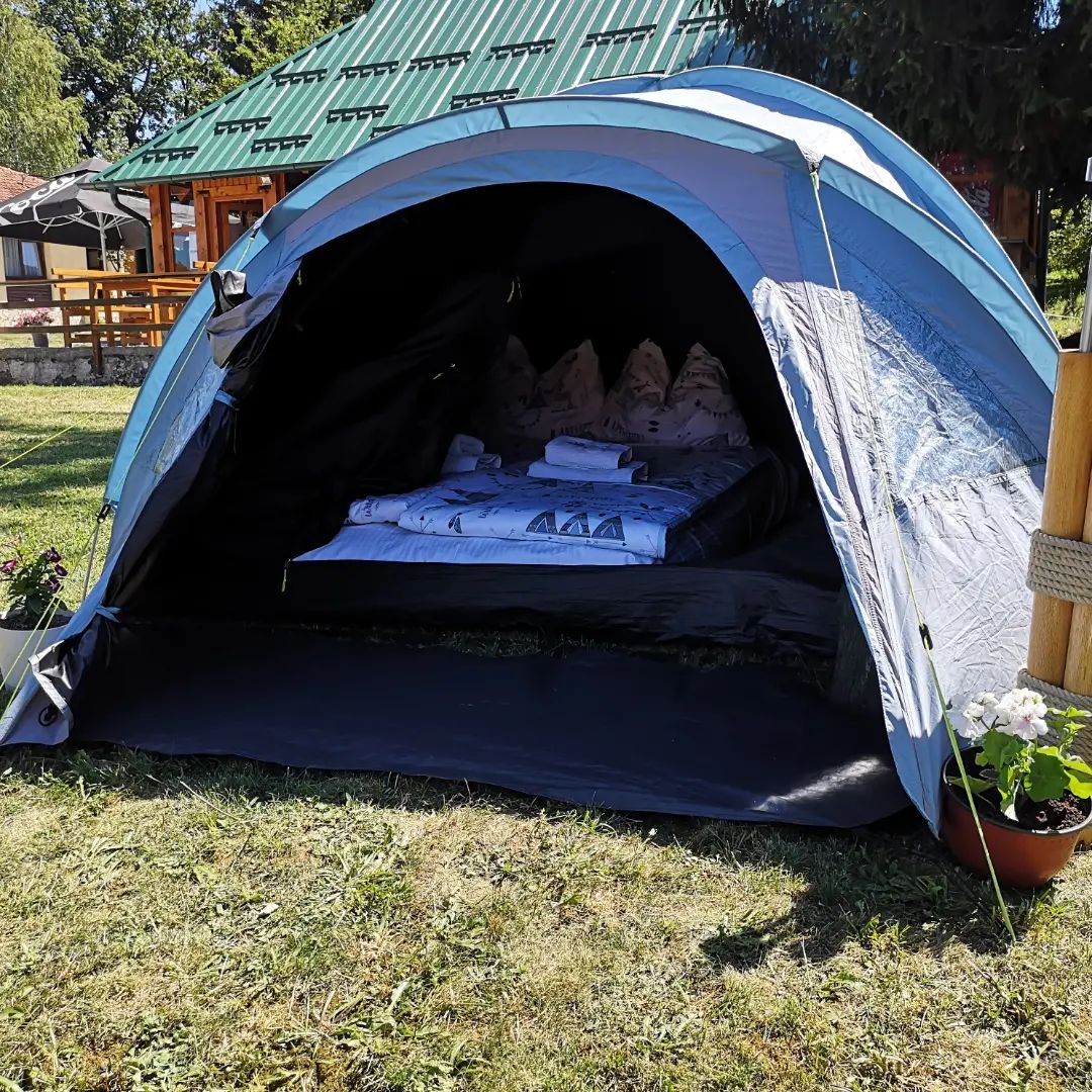 Playa Sokolica/Plaža Sokolica Campamento entero con dos pequeños tipis cada uno de 6,5 x 6 pies (2 x 2 m), cada uno con capacidad para 2 personas, con camas inflables, sábanas y toallas. No dudes en traer tus propias tiendas de campaña sin costo. Maravilloso entorno: Renav, oficialmente el río más limpio de Serbia (¡algunos aquí dicen el más limpio de Europa!), excelentes caminatas, cielos estrellados... Cerca de: Visoka Spa (9 km), Sirogojno (9 km), cascadas de Gostilje (20 km), Manastir Klisura (20 km), Voildingadi Panjica (14 km), Arilje (25 km)…