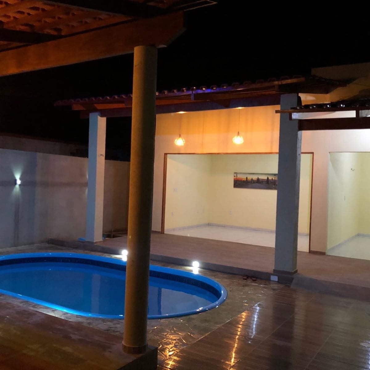 Está ubicado en el barrio José Elinas dos Santos (Cohab), frente a la plaza Antônio Martins dos Santos. Consta de garaje, gran área al aire libre, amplia sala de estar, cocina, área de servicio y 1 suite. Amueblado con 1 cama doble, 4 camas individuales, 1 sofá cama, así como equipo y utensilios de cocina, agua, gas, wifi, smartTV, entre otros artículos. Tiene propietarios esparcidos por toda la casa, lo que permite colocar hamacas y aumentar los espacios de alojamiento.
