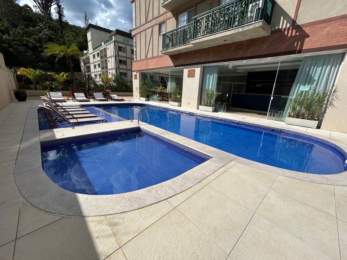 Acogedor apartamento de lujo, diferenciado en el corazón de Itaipava, dentro del condominio Granja Brasil, el más famoso de la región montañosa de Río de Janeiro. Contiene piscina climatizada; jacuzzi; sauna seca y vapor; sala de juegos; cuarto de juguetes; gimnasio; parque infantil y espacio infantil; pistas de tenis; sendero en bosque nativo. Todo preparado para atenderle con recepción y seguridad las 24 horas, estacionamiento con plaza cubierta. Diviértete con toda la familia en este lugar único y lleno de estilo.