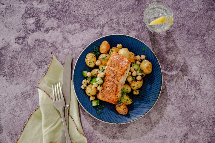 Disfruta de una comida relajada que incluye un aperitivo, una ensalada, un plato principal con dos guarniciones y un postre.
