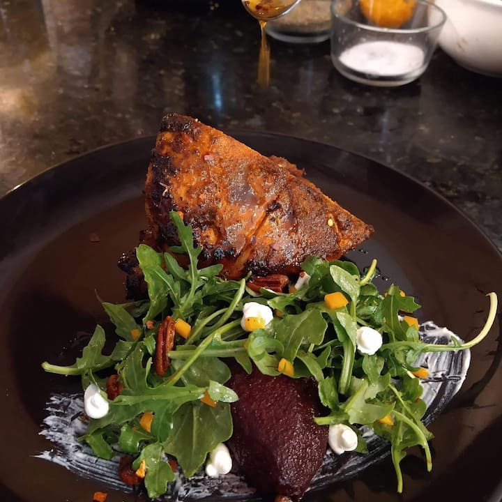 Disfruta de un festín de platos vibrantes y vegetarianos y proteínas a la brasa.