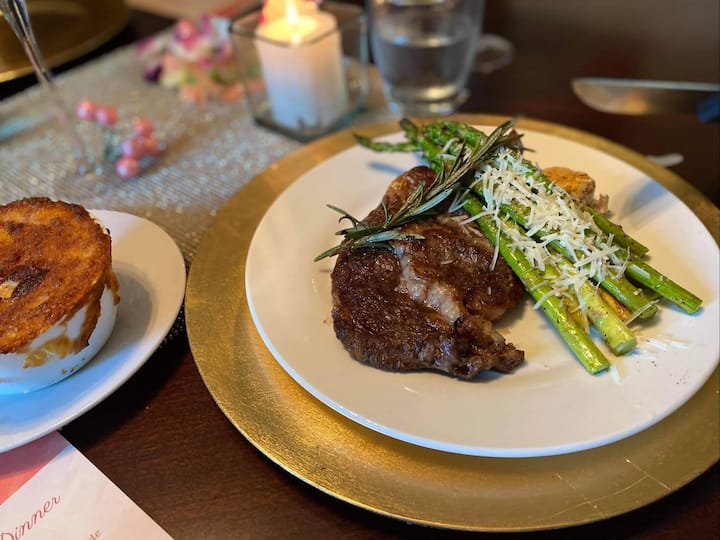Disfruta de una cena de lujo con un toque conmovedor que incluye los favoritos sureños de temporada, todo hecho para que te sientas como en casa.