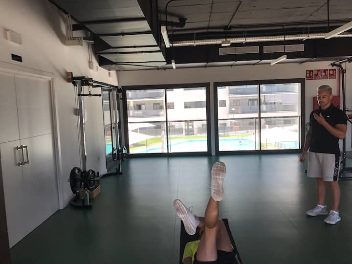 Completé varios cursos de entrenador personal en ORTHOS, Brooklyn Fitboxing, CAFYD..