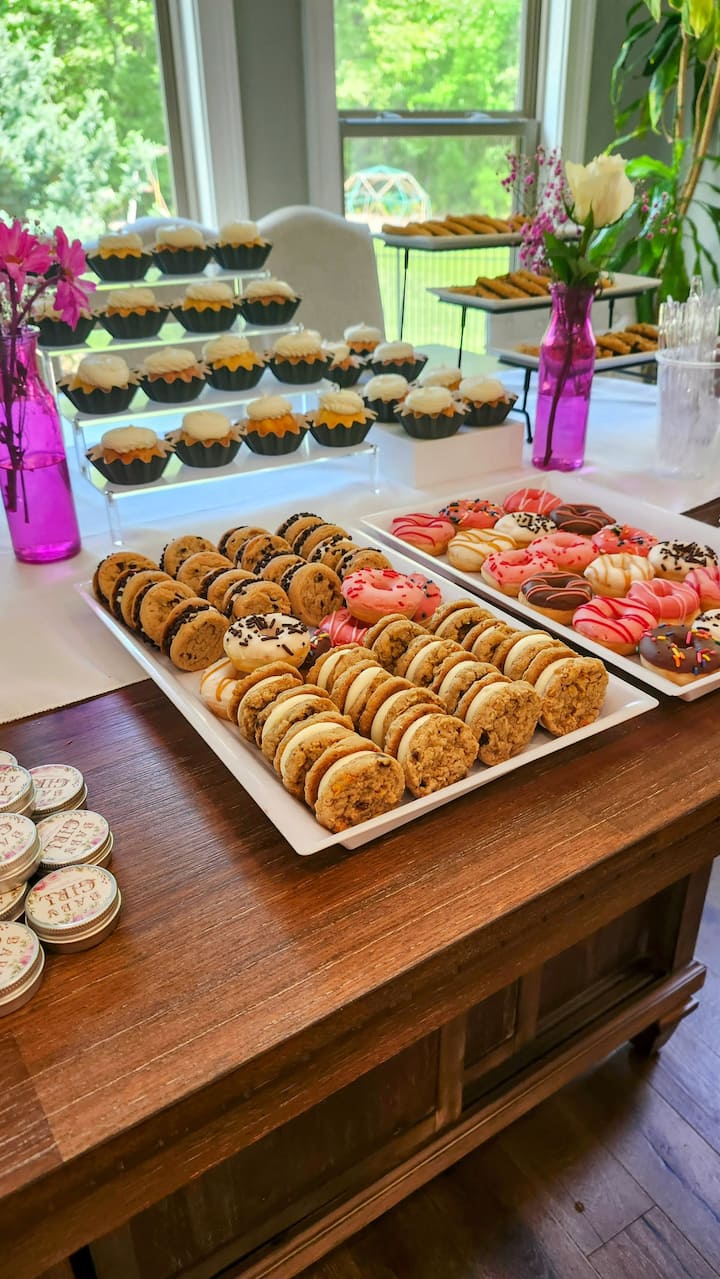 Una barra de postres de 45 minutos con dulces artesanales, minitartas, galletas y deliciosos bocados con un toque de temporada, perfecta para fiestas, baby showers o como complemento dulce.