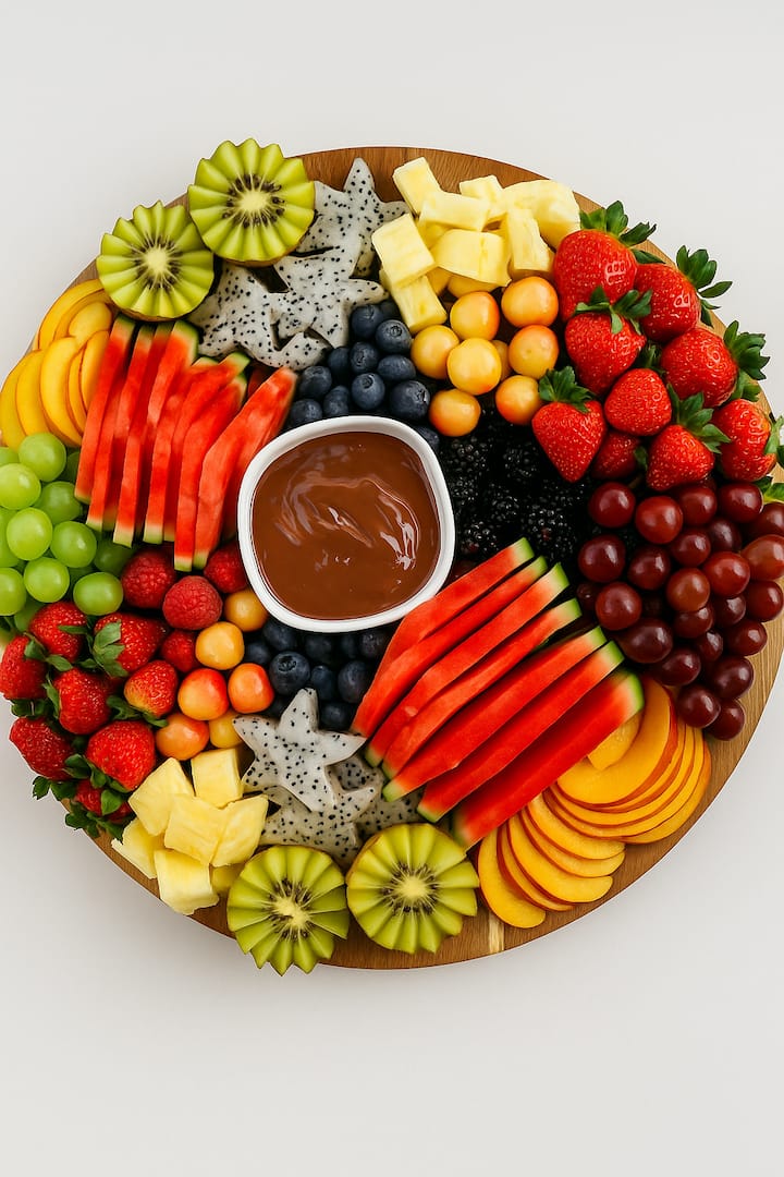 Disfruta de una vibrante selección de frutas frescas de temporada, bellamente presentadas y listas para compartir. Cada tablero destaca lo mejor de la temporada. Frutos del bosque jugosos, cítricos frescos, favoritos tropicales y selecciones locales. ¡Toda la fruta se corta a mano profesionalmente y se elabora para deleitar todos tus sentidos!