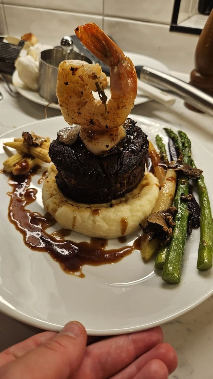 7 platos refinados con risotto de trufa, lomo de cordero y pastelería francesa clásica.