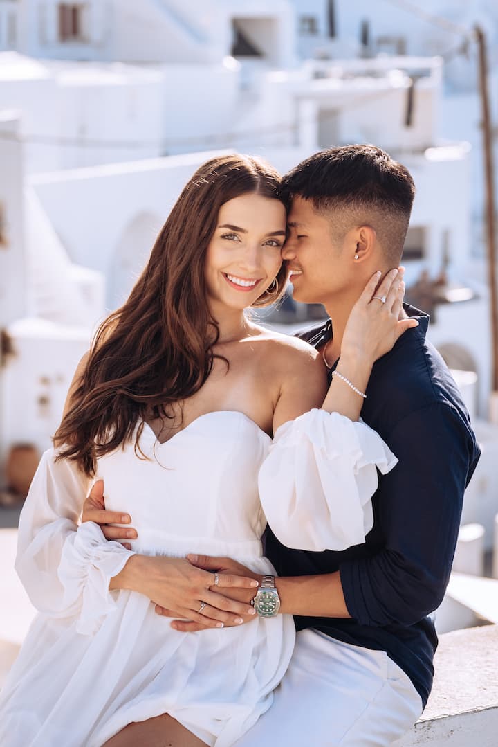 Sesión de fotos con un vestido con vuelo en Imerovigli