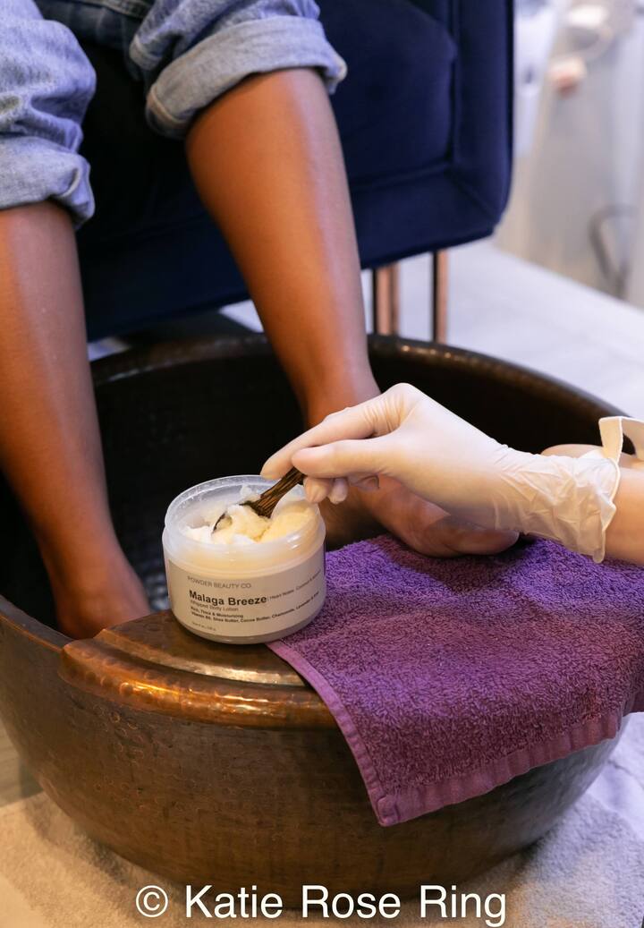 Esta pedicura proporciona un poco de TLC muy necesario para los pies con exceso de trabajo. Comienza con un verdadero baño de pies con infusión de bourbon combinado con sal de epsom, menta, carbón y aceites esenciales terapéuticos como pimienta negra y salvia para que la sangre fluya. Se añade aceite de árbol de té por sus propiedades antisépticas y antifúngicas.El recorte y limado de uñas, el cuidado de cutículas y el pulido de talones y plantas de los pies se realizan con nuestra lima especializada Pro Fusion.Se aplica un exfoliante de bourbon para los pies.