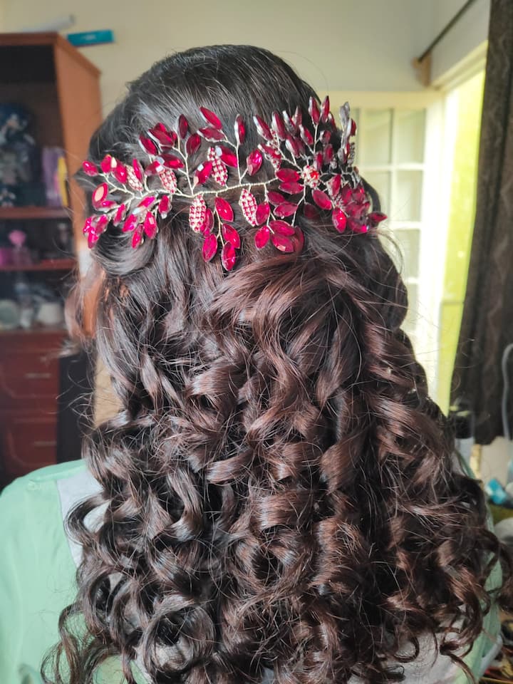 Esta opción trabaja el cabello en ondas, en semirecogido o en recogido sencillo. Incluye accesorios como horquillas, pasadores, ligas y fijador de alta duración.