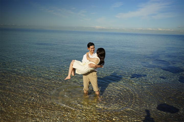 Una hermosa y natural sesión de fotos costera con ubicaciones flexibles como playas de arena, muelles, formaciones rocosas o escenas al atardecer. Adecuado para parejas, viajes familiares, retratos de estilo de compromiso o sesiones individuales.