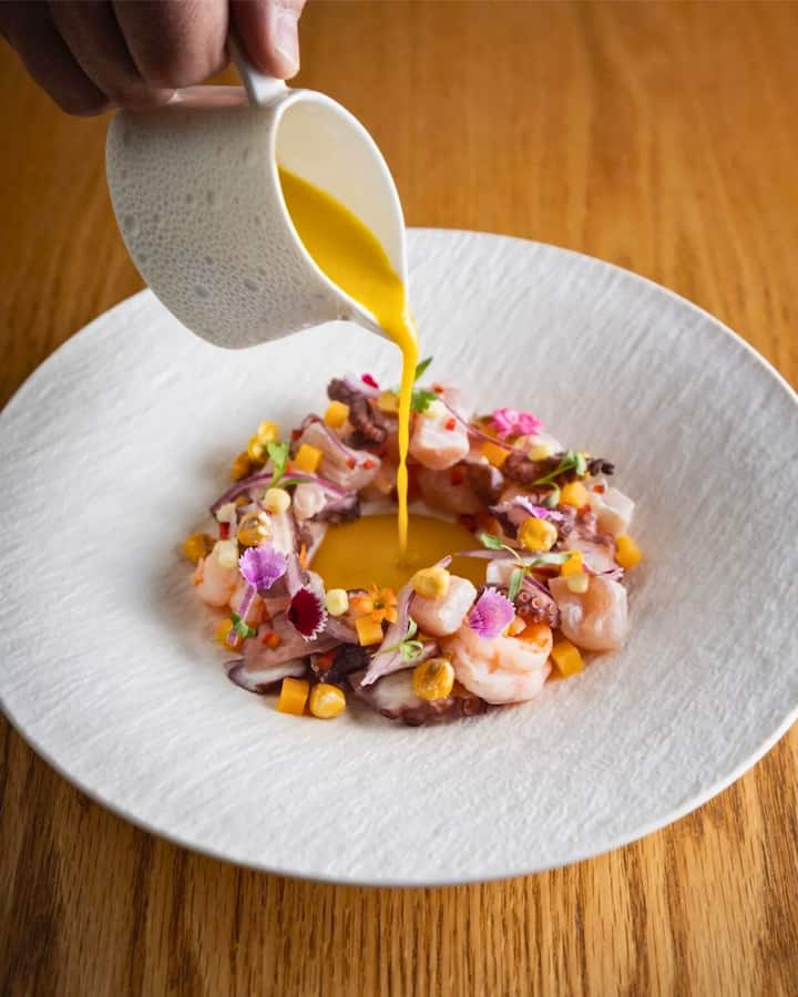 Esta selección de 4 tiempos pone su atención en pescados y mariscos con notas de coco, cítricos y chiles suaves. Las preparaciones priorizan la frescura y son buena opción para comer junto a la piscina o la playa.