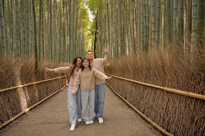 Captura momentos genuinos sin estrés de selfie: ¡déjame encargarme de la fotografía para que te relajes y disfrutes de Kioto!