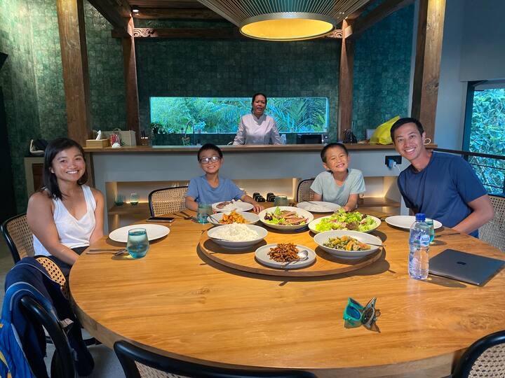 Relájate y disfruta de un almuerzo recién preparado en tu villa. Sirvo platos indonesios y occidentales con ingredientes locales frescos, con opciones de menú adaptadas a tus preferencias.