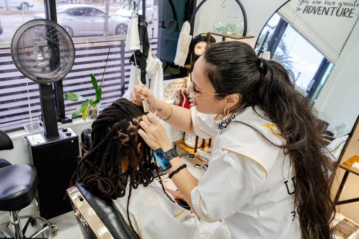 Domino todos los aspectos de las extensiones de cabello con clips (Locs) y trabajo con todo tipo de texturas y densidades de cabello.