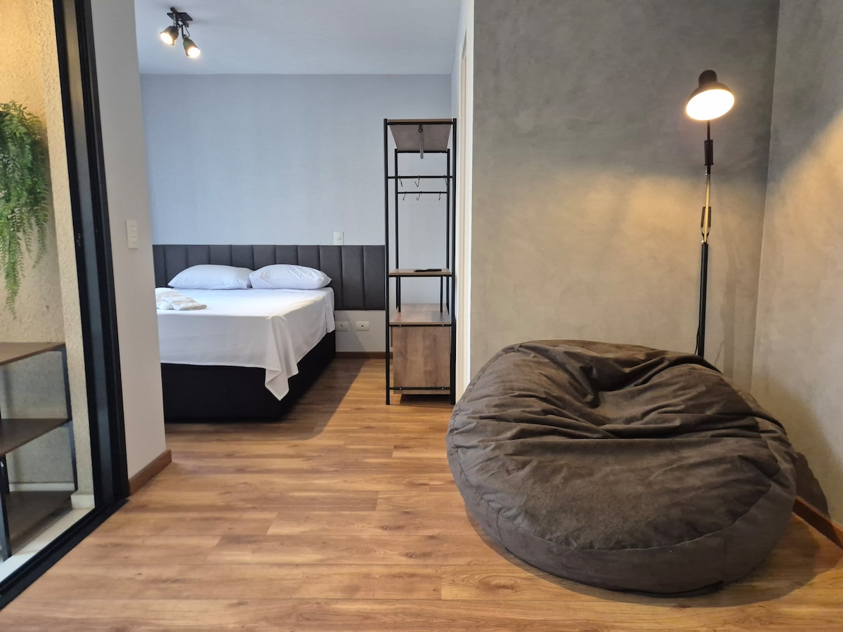 ¡Estudio moderno en el centro de Curitiba cerca del paseo público! > Check-in autónomo, conserjería 24h > Junto al Paseo Público > Alojamiento: Habitación con cama doble. > Wi-Fi: 500mbps. > Aire acondicionado > Gimnasio completo > CoWorking con internet rápido > Cafetería en la planta baja con opción de desayuno pago > Servicios cercanos: opciones de restaurantes, cafeterías y tiendas, Cine Passeio, Café Sesc, Shopping Mueller, Paço da Liberdade > Estacionamiento: Pagado cerca del edificio. > Cuarto piso.