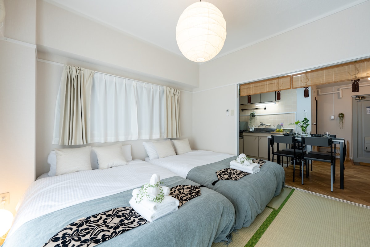 Esta es una zona del séptimo piso que puede alojar hasta 5 personas, a 7 minutos a pie de la salida sur de la estación de Sangenjaya. A 2 paradas y a 4 minutos de Shibuya, con excelente acceso al centro de la ciudad. Hay muchos restaurantes baratos y deliciosos desde la mañana hasta la noche. Además, hay un supermercado abierto las 24 horas/una tienda de 100 yenes/un edificio de farmacia al otro lado de la calle y muchas tiendas de conveniencia cerca, lo que facilita la vida. 2 camas individuales 1 colchón individual Puede alojar hasta 5 personas (se recomienda 4 personas) Hemos introducido champú de aromaterapia japonés y sábanas de algodón 100%, y las comodidades son atentas. Netflix/YouTube/AmazonPrime ilimitado en el televisor de tu habitación. Hay wifi de alta velocidad disponible de forma gratuita. Hay muchas comodidades esenciales como utensilios de cocina/lavadora/nevera/microondas/tostadora, para que puedas quedarte cómodamente como un local. El acceso al centro de la ciudad, como Shibuya/Shinjuku/Ginza/Roppongi, también es bueno, por lo que es una buena base para vivir. Úsalo para viajes de negocios/largo plazo/corto plazo o varias estadías. Quedo a la espera de tu llegada.