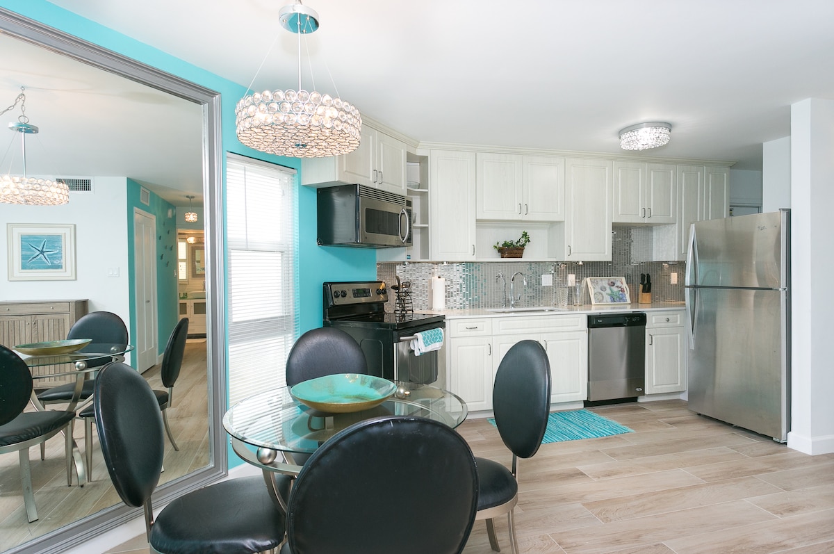 Descubre el refugio perfecto junto a la playa en nuestro apartamento recién amueblado del segundo piso, a pocos pasos de la playa. Disfruta de las comodidades modernas, como un horno Smeg, lavavajillas y utensilios de KitchenAid, así como un televisor de pantalla plana y wifi de fibra de alta velocidad. La espaciosa sala de estar y el comedor proporcionan un amplio espacio para relajarse. Relájate en la cama tamaño king con un nuevo colchón híbrido y almohadas de lujo, adornadas con sábanas Brooklinen de primera calidad. El moderno baño cuenta con una renovación