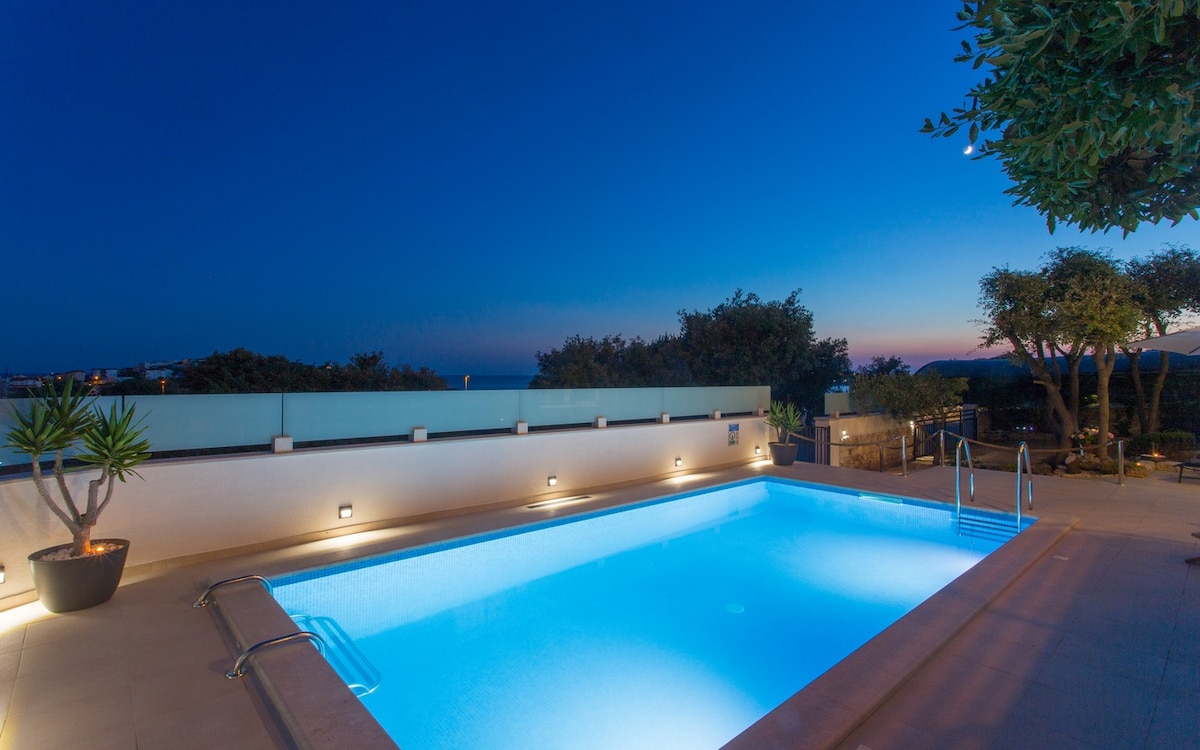 Porto Manera, casa de verano con vista al mar y piscina climatizada