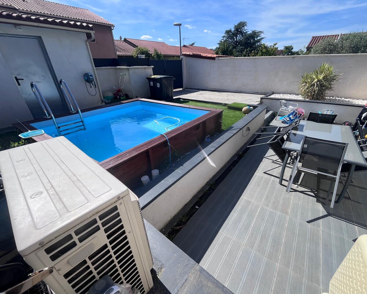 Au sein d'une propriété familiale Dauphinoise, une maison indépendante de 68m2 alliant le charme de l'ancien et du contemporain, entièrement équipée pour vous accueillir : jacuzzi 6 places, piscine, barbecue, terrasse indépendante, table de ping-pong et baby foot. Pièce de vie de 35m2 avec cuisine équipée + salon/salle à manger, TV, WIFI, machine à laver, sèche linge. Vous trouverez en plus : Nespresso, bouilloire, robot, crêpes-partie, presse agrumes, etc... La campagne a proximité de Lyon.