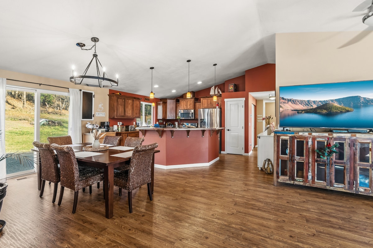 Relájate y desconecta en este tranquilo retiro. Cerca del río Rogue, esta hermosa propiedad tiene más de un acre con exuberante césped verde alrededor. Casa actualizada con bonitas características y un dormitorio principal y baño notables. Ambas habitaciones tienen espacios de trabajo y la casa tiene excelente wifi ~ 200 mbps. Comienza tus mañanas con un delicioso Nespresso y disfruta del canto de los pájaros en el exterior. Oasis al aire libre con cómodos asientos en el patio y comedor al aire libre, luces del patio trasero, chimenea, barbacoa y juegos de patio. ¡Cerca de MUCHA diversión al aire libre!