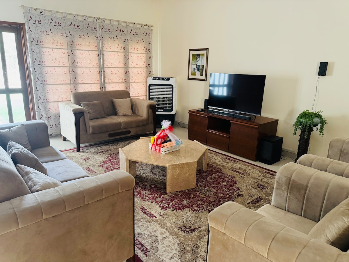 BIENVENIDO a A Luxury Residence, un elegante bungalow de nueva construcción ubicado en un vecindario tranquilo y prestigioso en la ubicación privilegiada de DHA Karachi, a solo 30 minutos del Aeropuerto Internacional Jinnah y a solo 10 minutos de Dolmen Mall Clifton y Sea View Beach. Este bungalow de dos pisos ofrece un alojamiento cómodo y elegante para un máximo de 8 huéspedes con 4 dormitorios en suite, cada uno equipado con comodidades modernas para garantizar una estancia lujosa e inolvidable. Solo aceptamos reservaciones de familias.