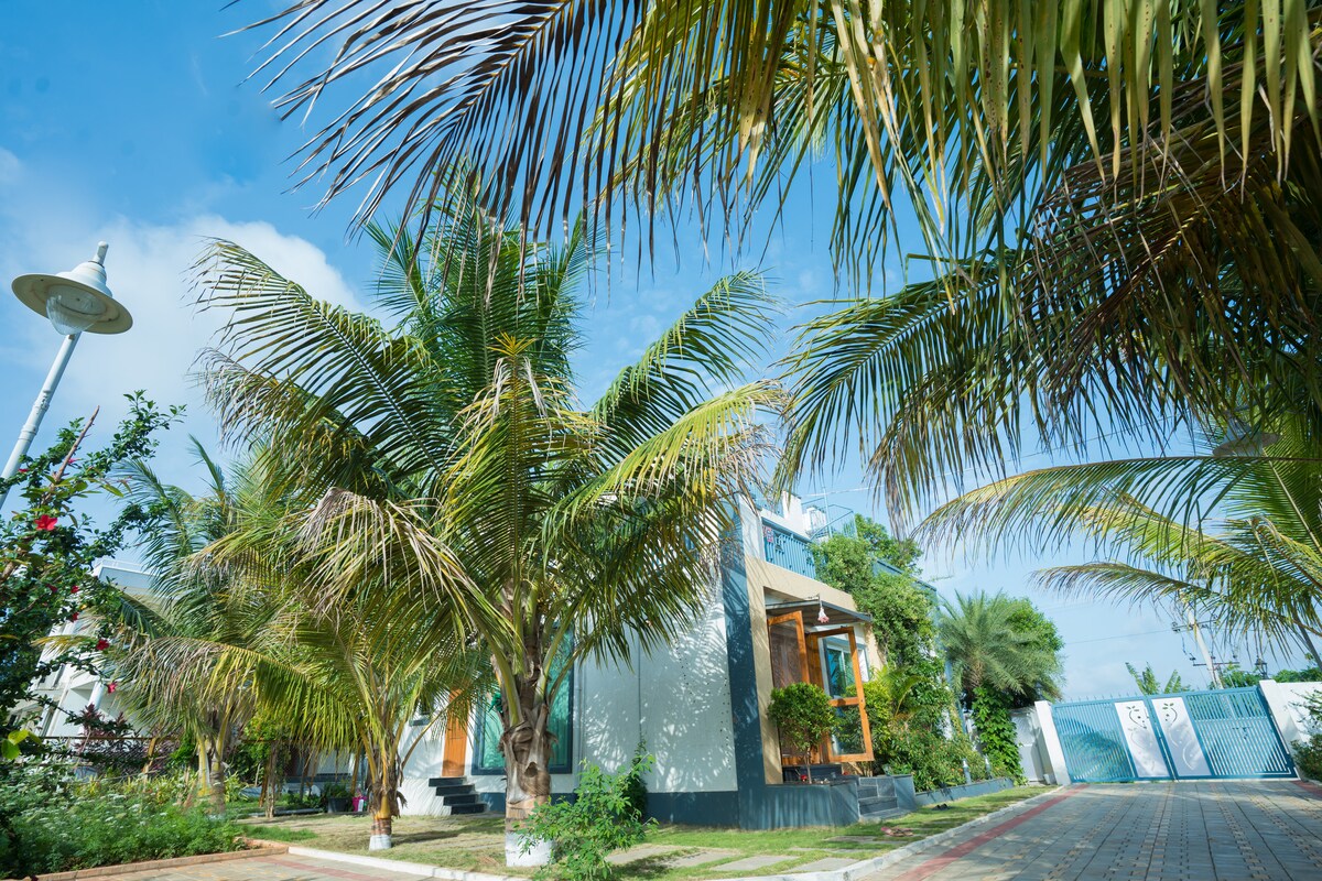 Descubre el magnífico paisaje que se encuentra en una extensa granja de 1 acre de mango, plátano, coco y otra amplia gama de frutas y verduras. El retiro en la granja HarithaMizu es una acogedora casa de dos dormitorios que es perfecta para una escapada de fin de semana del bullicio de la ciudad. La casa de dos dormitorios ofrece todas las comodidades modernas para una estancia cómoda para las personas que buscan una escapada rápida de la ciudad y el espacio abierto al aire libre ofrece la posibilidad de planificar reuniones con amigos y familiares.