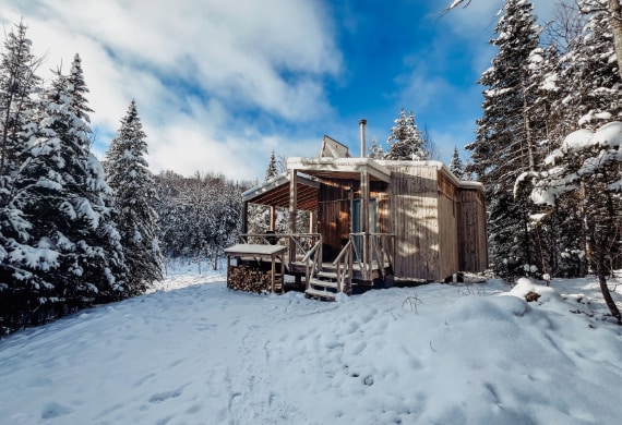 Magnifiques petits chalets en bois, vue sur la montagne , c'est un havre de paix. Amoureux de nature et de plein air vous serez choyés. Pour ceux qui ont besoin de ressourcer les chalets sont douillet et bien aménagés. Plusieurs commodités ( internet , air climatisé, foyer intérieur au bois, cuisine, spa ) . A noté que le spa et sauna sec sont partagés entre les unités du domaine. Accès à la rivières et sentier directement du chalet.