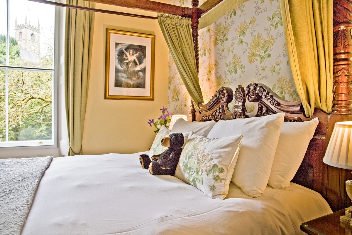 Stylish large four-poster room with stunning view