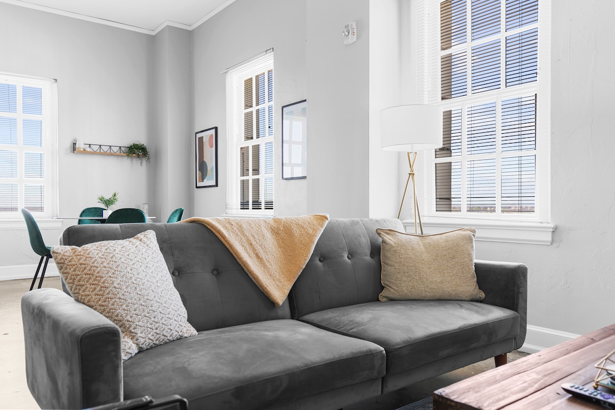 Bienvenido a tu lujoso refugio en el corazón de Birmingham, Alabama, un paraíso diseñado con un gusto exigente en mente. Disfruta de acceso exclusivo a servicios de primera calidad, incluida una piscina cristalina donde podrás tomar el sol con total privacidad. Descansa en un colchón Purple. Mantente activo y lleno de energía en el gimnasio de última generación o relájate con un cóctel en la terraza de la azotea, donde las vistas panorámicas del horizonte de la ciudad proporcionan el telón de fondo perfecto para la relajación. Diseñado por: Decoration Nation LLC