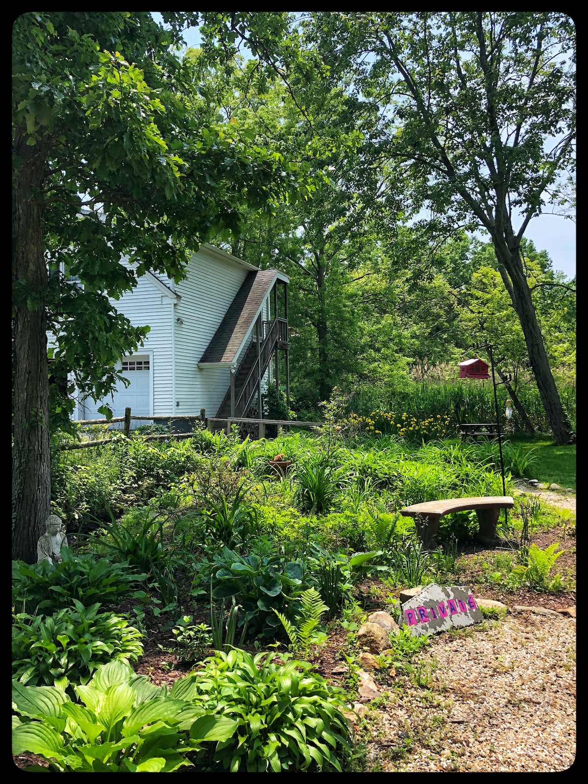Tres décadas de renovaciones de buen gusto, muchas de ellas con material reutilizado, han hecho que este granero reconvertido sea digno de una revista. Apartada de la carretera en 1 acre de terreno boscoso con un arroyo balbuceante, esta moderna casa convenientemente ubicada mantiene su encanto rústico. Con techos de 30 pies, vigas de madera a la vista, docenas de ventanas, una gran variedad de muebles eclécticos y un piano de cola, el encanto del granero es inmediatamente obvio. Perfecto para escapadas románticas, pequeños retiros, reuniones familiares y mucho más.