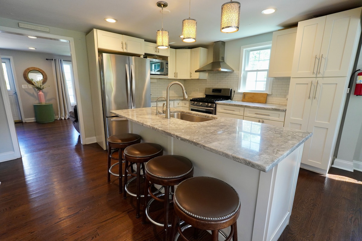 Escápate a Norwalk Cottage, una casa de 4 dormitorios y 2 baños bellamente diseñada, perfecta para 8 huéspedes. Esta escapada familiar cuenta con una cocina totalmente surtida, una acogedora chimenea y una divertida sala de juegos en el sótano. Relájate en el patio trasero privado con una terraza, parrilla y fogón. Ubicado en la tranquila frontera de Norwalk/Westport, estás a pocos minutos de Calf Pasture Beach, excelentes restaurantes y el vibrante distrito de SoNo. Disfruta de aire acondicionado central, wifi rápido y un espacio de trabajo dedicado para la escapada perfecta durante todo el año.