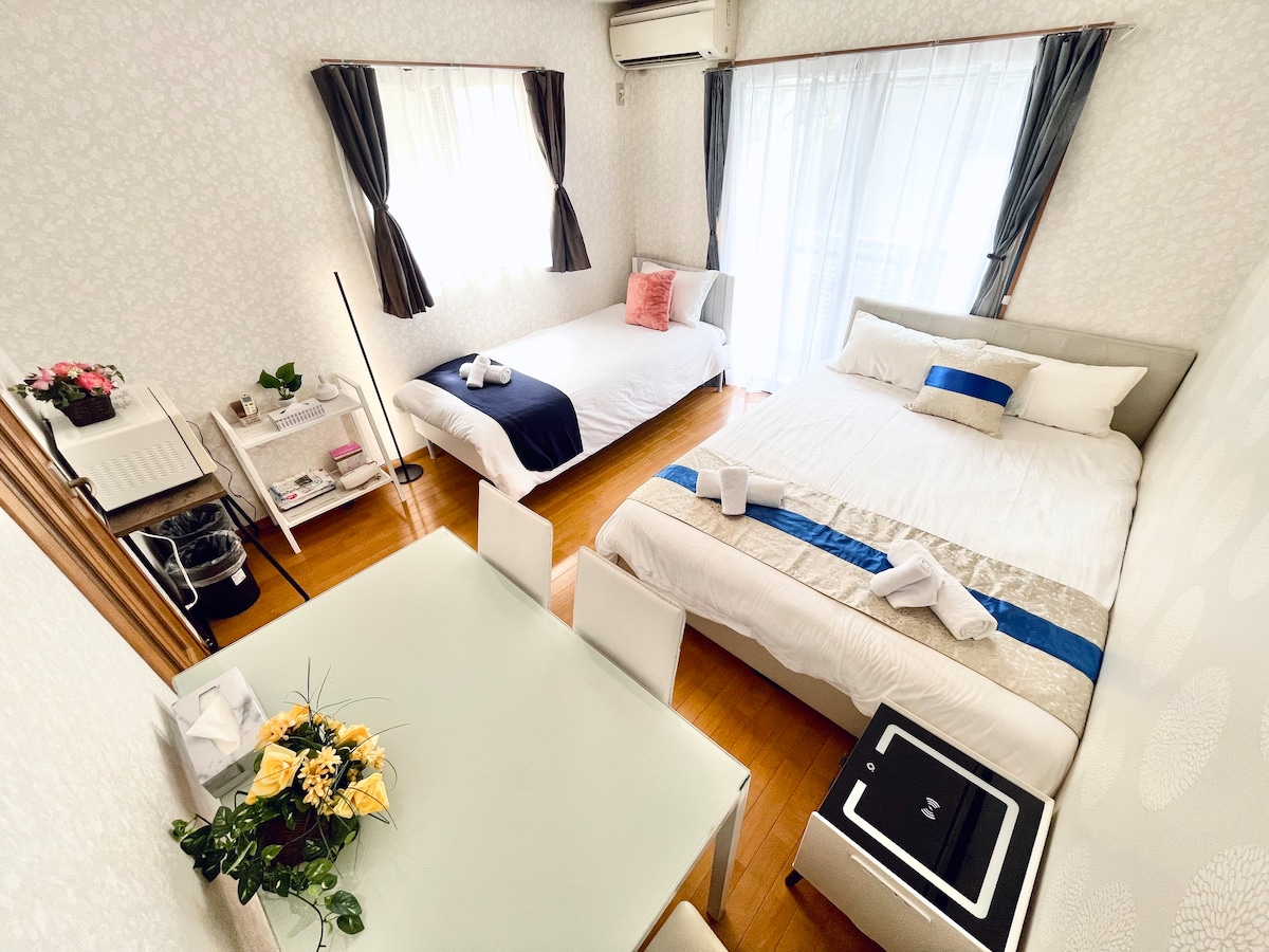 Estación de Shibuya a 6 minutos a pie del cruce de Shibuya (5 minutos a pie): pon en el cruce más concurrido del mundo, siente el pulso de Tokio. - A 8 minutos a pie del cielo de Shibuya (piso superior de Shibuya Scramble Square): vista panorámica de 360 grados de Tokio (se recomienda reservar con anticipación). Acceso directo a la estación JR Shibuya Tokyo Ueno Akihabara Ikebukuro Shinjuku Okubo Harajuku Meguro Shinagawa Narita Airport Haneda 🛋️ Instalaciones y servicios de la habitación Dos dormitorios, una sala de estar, un baño, un baño (seco y seco) Arreglos 🛏️ de las camas 💞Dormitorio principal: una cama matrimonial. (W150cm × L200cm) Tiene capacidad para 2 personas cómodamente. 💞Segundo dormitorio: (W150cm × L200cm) Tiene capacidad para 2 personas cómodamente. 💞Sala de estar: sofá cama plegable (W120 cm × longitud 200 cm) para el quinto huésped. 📌 Consejo: cuando uses tatami, dobla en un gabinete de almacenamiento y deja espacio para una mesa de té Comodidad para 🧺 vivir - Infraestructura: wifi gratuito, aire acondicionado de refrigeración y calefacción, microondas, nevera, lavadora, secador de pelo, plancha, máquina de TV, hervidor eléctrico. - Suministros gratuitos: toallas, cepillo de dientes, champú, acondicionador para el cabello, limpiador corporal, pañuelos faciales, papel higiénico. - Artículos de cocina: utensilios de cocina básicos, sartén, olla, platos. Instalaciones 🏪 circundantes. La casa en el distrito de negocios, restaurantes y tiendas, hay diez líneas de tranvía disponibles y el transporte es muy conveniente.