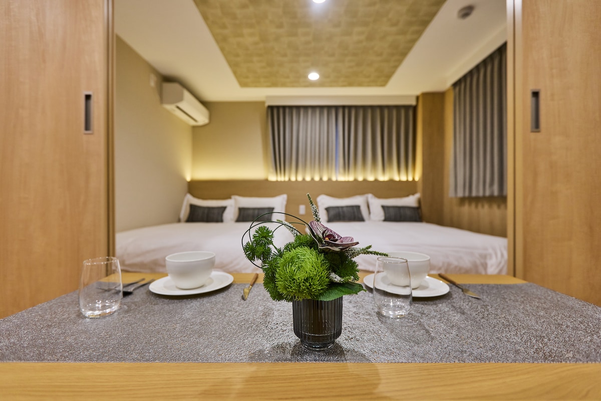 Este alojamiento es ideal para disfrutar de una estancia de larga duración con la familia o los amigos. Es un apartahotel que abrió sus puertas en 2023 y está situado en una tranquila zona residencial cerca del centro de la ciudad. Hay un parque, un santuario y un estanque en los alrededores. El espacioso interior de 35 m² tiene un diseño de estilo japonés. Hay una cama queen y tres futones, con capacidad para cinco adultos. (Los niños menores de 2 años duermen gratis en la cama con sus padres). Hay una cocina compacta con capacidad para cocinar, una lavadora-secadora totalmente automática, un baño de gran tamaño y un aseo independiente. También cuenta con Android TV y wifi gratuito, por lo que es un entorno adecuado para pasar el rato o trabajar en el interior. También puedes relajarte en la azotea abierta a los huéspedes. El check-in se realiza mediante un sistema de check-in sin restricción de horario que utiliza una tableta, por lo que no hay que preocuparse por llegar a altas horas de la noche. La puerta se controla con el último sistema de llave táctil. Se encuentra a 5 minutos a pie de la salida de la estación más cercana (estación Sumiyoshi, línea Hankyu, línea Toei Shinjuku), y hay un supermercado cerca. Relájese con su familia en este tranquilo alojamiento.