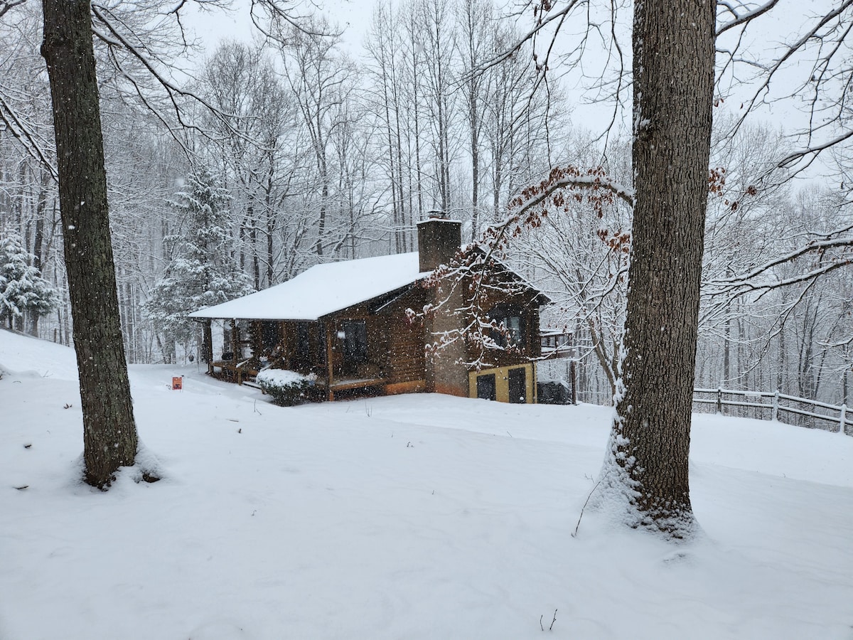 Snuggled in the Blue Ridge. Secluded from the crowds. Experience your visit in an authentic log cabin. Spacious sleeping loft. Perfect romantic escape, friends getaway, or personal retreat. Workout area/sitting room. Fresh eggs (in season), wine, tea, coffee. 1G Internet, SMART TV. A/C. Less than 2 miles to Devil's Backbone and Bold Rock. Minutes from App. Trail, Wintergreen Resort, breweries, wineries, cideries, restaurants, horseback riding, hiking trails, outdoor concerts, & antique shopping.