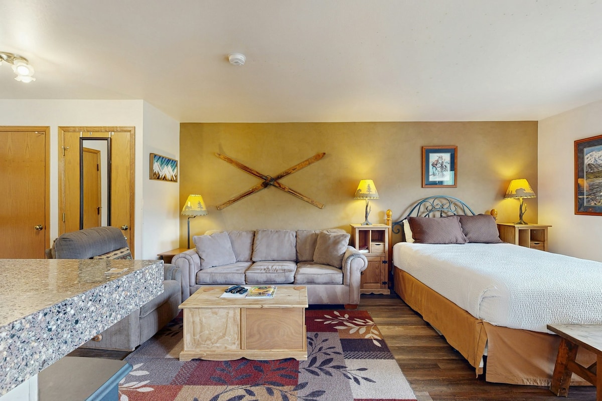 ¡Estudio junto a pistas de esquí ubicado en la base de Peak 9!