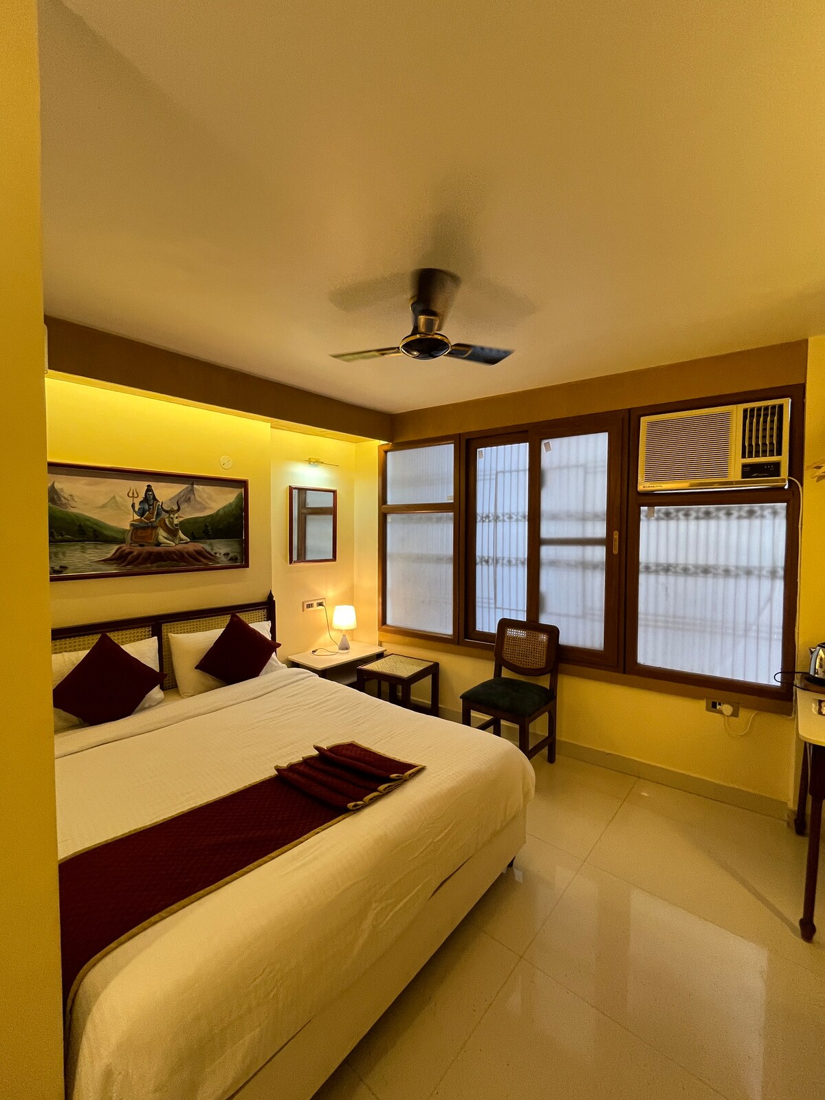 Luxury Room near Kashi Vishwanath Temple | Premium Comfort & Heritage Stay Designed with modern interiors and premium amenities, the room features air-conditioning, plush bedding, and a well-appointed bathroom .Guests can enjoy the vibrant energy of the temple streets. Ideal for pilgrims, couples, and travelers seeking both convenience and class, our space ensures serenity just steps away from the divine. Book now to experience Varanasi’s soul wrapped in comfort, luxury, and tradition.