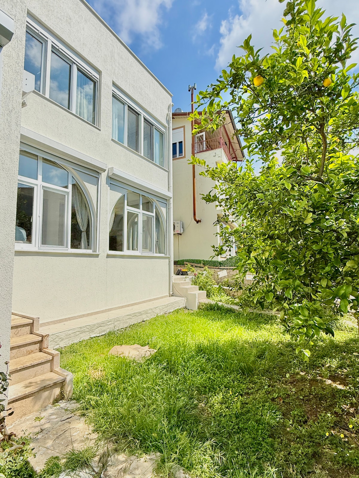 Disfruta de una estancia tranquila en nuestro moderno apartamento de 2 dormitorios en el centro de Side. La playa está a solo 800 m y los restaurantes, las cafeterías, el paseo marítimo y la ciudad antigua de Side están a pocos minutos a pie. Ubicada en una calle tranquila, la casa también cuenta con un jardín relajante con una barbacoa, y admite mascotas LO más destacable: • A 800 m de la playa. • A pie de restaurantes y de la antigua ciudad de Side. • Estacionamiento gratuito • Se admiten mascotas. • Jardín con barbacoa • Comodidad limpia y moderna de 2 dormitorios