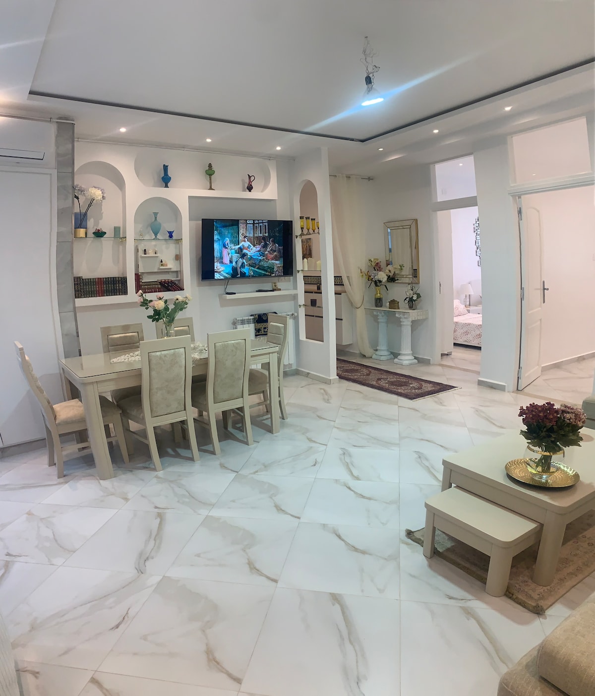 Estaré encantado de recibirle en nuestro encantador apartamento para 4 personas en pleno Argel ❤️la blanca, en el barrio de Telemly. Tendrá unas magníficas vistas de Argel, el mar, la gran mezquita y el memorial del mártir. El apartamento ha sido reformado del suelo al techo. Con todo lo necesario para pasar una agradable estancia, incluye: cocina equipada, sala de estar luminosa con cama doble, sofá cama y baño.