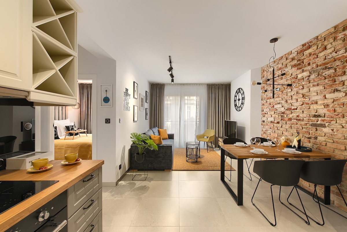 We invite you to a stylish apartment in the heart of Poznań at Swiety Marcin. The apartment is freshly renovated, designed by interior designers with attention to detail. It has a fully equipped kitchen, a beautiful bathroom, a large living room with a comfortable sofa, a table with chairs and a smart TV. The bedroom has a large double bed (160x200cm) and wardrobe. Apartment is located on first floor and is very quiet, because it is located in the courtyard.