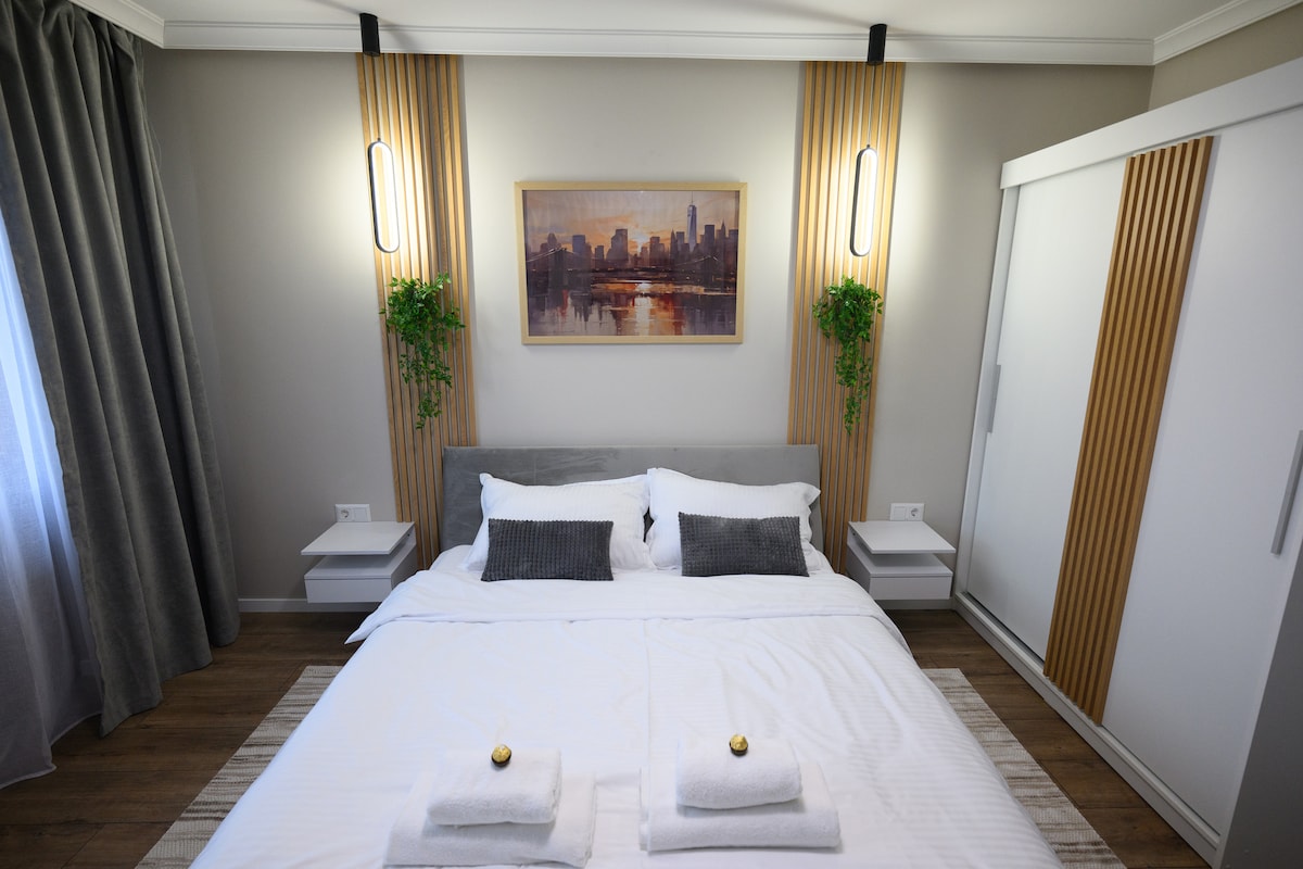 Apartamento de un dormitorio donde puedes disfrutar de un silencio completo, lejos del tráfico de automóviles, fresco en verano, calefacción de gas, baño con cabina de ducha, agua caliente, cocina equipada con todos los servicios públicos, en la casa el café de la mañana, balcón con vistas al jardín, para fumadores. Colchón y ropa de cama para un niño (bajo petición) Se encuentra en el centro de Sighetu Marmatiei, a 200 m del Monumento a las Víctimas del Comunismo, cafeterías, restaurantes y supermercados están cerca.