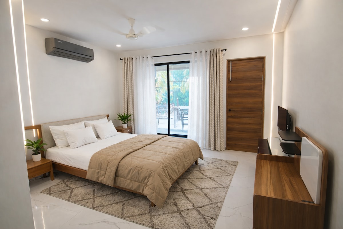 Trae a tu familia o grupo de amigos a este espacio bellamente diseñado que combina comodidad, estilo y una ubicación privilegiada en el corazón de Gurgaon. Ya sea que estés en la ciudad por trabajo o por una escapada de fin de semana, esta acogedora casa ofrece todo lo que necesitas: amplias habitaciones con lujosas camas, armarios empotrados y baños privados limpios para una estadía relajante. La entrada de concepto abierto crea el entorno perfecto para disfrutar de un tiempo de calidad, jugar juegos, compartir comidas o simplemente relajarse juntos, como en casa.