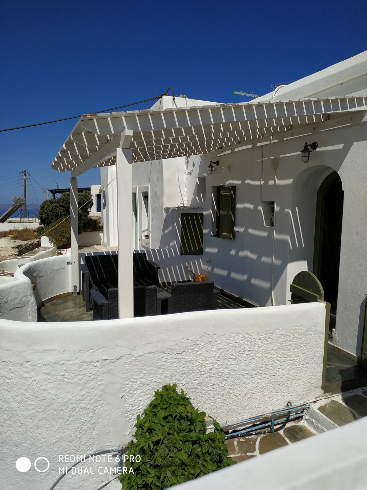 Abre las contraventanas azul marino y deja entrar la brisa refrescante, luego prepara un refrigerio en la encimera de hormigón de la cocina urbana en un refugio frente al mar. ¡Entra en la espaciosa y frondosa terraza para disfrutar de unas tranquilas bebidas al atardecer con vistas panorámicas al mar! El apartamento está situado junto a una playa de arena para nadar por la mañana y a 2 minutos a pie del centro de Naousa y su plaza principal. A pocos pasos hay tiendas, restaurantes, bares y clubes, ¡pero la zona es muy tranquila y silenciosa!