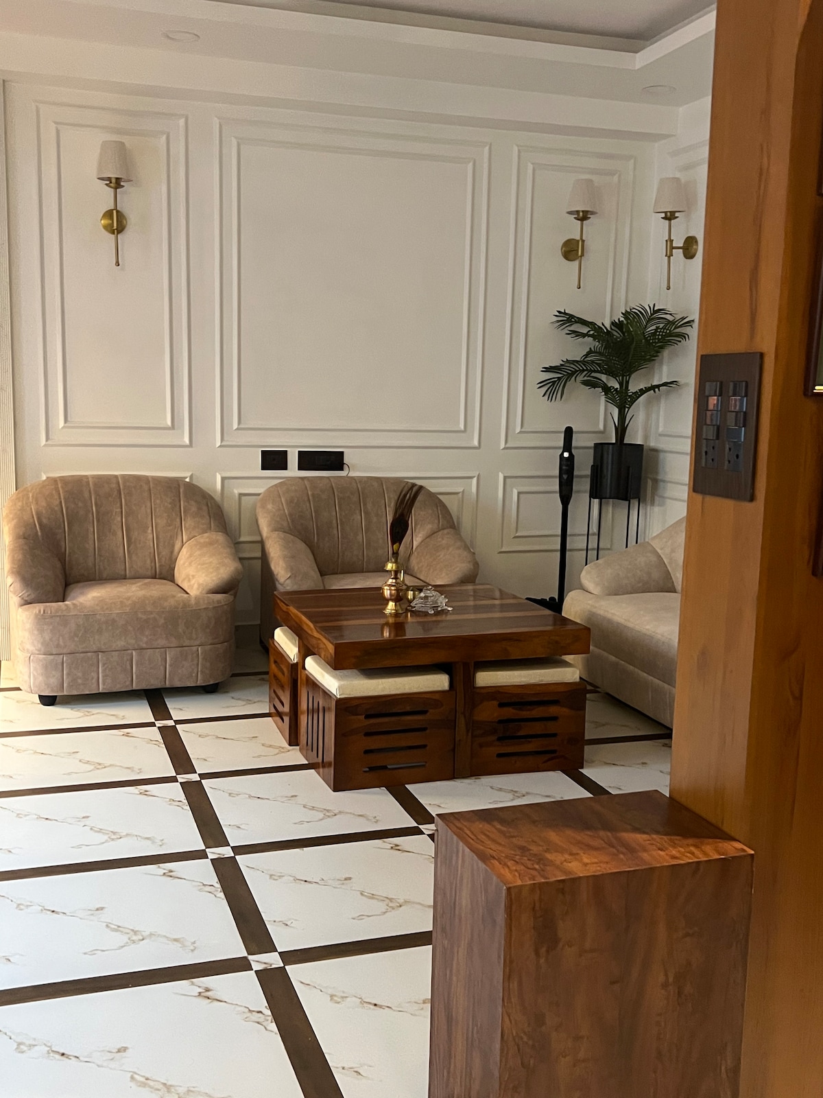 Bienvenido a un nuevo apartamento de 2BHK, diseñado para huéspedes que valoran la comodidad, la paz y un ambiente hogareño. Ubicado en un barrio privilegiado pero tranquilo, ideal para familias, amigos y todos. • Amplios interiores modernos de 2BHK (aire acondicionado en 1 habitación) • Apartamento en el tercer piso que ofrece privacidad, mejor luz y ventilación. • Cocina bien equipada para cocinar como en casa • Balcón y espacios abiertos con mucha luz natural y aire fresco. • Entorno seguro e higiénico. • Estacionamiento para tu comodidad.