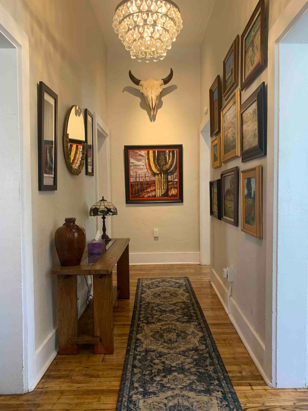 ¡Alójate en la exclusiva Art House en el distrito universitario de WNMU! A poca distancia en coche o a 15 minutos a pie del centro de Silver City, esta casa está completamente remodelada con una cocina de casa de campo actualizada y cómodas salas de estar. Dos hermosos dormitorios bien equipados son perfectos para parejas que viajan juntas o familias. Se puede acomodar una quinta persona en el sofá extragrande.
