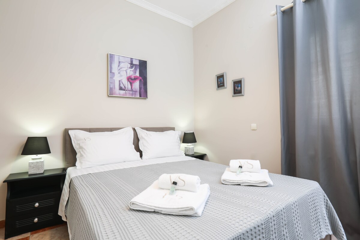 El alojamiento perfecto para disfrutar de encantadoras vistas panorámicas al mar y una opción ideal de alojamiento, en el corazón de la isla, para aquellos que deseen saborear la belleza tranquila y natural de Corfú durante todo el año. Consta de una amplia sala de estar y cocina totalmente equipada, 2 dormitorios, 1 baño y aproximadamente 100 metros cuadrados de terraza/veranda con vistas a la ciudad de Corfú y al mar Jónico. Ten en cuenta que se recomienda alquilar un auto, ya que la zona no cuenta con transporte público regular.